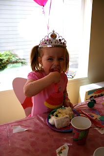 What a fun party - 6 little girls sitting out in the sun and playing with the endless activities contained in their little princess buckets (courtesy of grandma Nancy thank goodness!). They were all so cute and Skyler was SO excited to have a little mermaid party with her "best friends!"