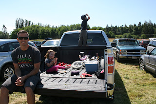 We decided to take a last minute trip out to Whidbey Island today. I had never been. The kids loved the ferry ride (and so did mom and dad - they served popcorn, beer and wine!). We went through the town of Langley and then headed north towards Deception Pass. However, we got held up at the Loganberry Festival and never made it to the Pass. We did see Mike on the way home finishing up his 24 hour race - so random and very cool!