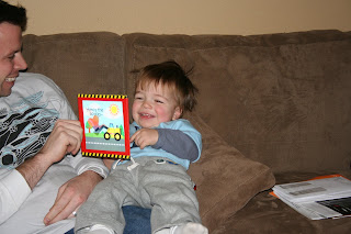 Last night was one of those nights I never want to forget. Leif was coming home late from work so asked if I would keep Liam awake for him. Liam was getting so tired...he was laying on the floor when Leif walked in. With a huge smile, he threw his pacifier on the floor and reached up for his daddy. They sat on the couch together while Liam told Leif all about his day. He pointed to his grandma and told Leif about going to Bastyr park and sliding down the slide with Boomer. He pointed to his balloon that he accidentally let go of and was now floating at the ceiling where he couldn't reach it. He pointed to the kitchen, and to me and never once stopped babbling about this or that. It was the cutest thing. Then he got tired of talking and put his head down on his daddy's shoulder to fall asleep. It was so obvious that he was glad he had waited up...
