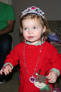 Liam came racing down the stairs this morning asking “Is Santa here??” We looked at the cookies in front of the fireplace and they had been all eaten up! He opened his present from Santa – a piano! Just what he had asked for! Skyler spent her morning putting her new toys in and then pulling them out of her stocking. She too was asking about “Fanta.” She got a princess crown, earings and a necklace that she has been wearing ever since. She puts them on each morning and walks around like “so what – I’m a princess.” Ted and Stephanie were there with us enjoying the action and helping us to get out the door!