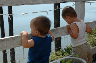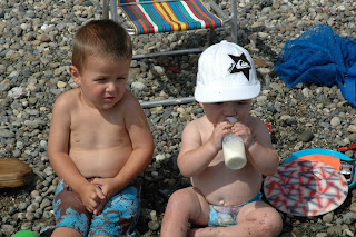 We went out to Herron Island last weekend with Lenore and Beckham and had a blast! It was so beautiful on Saturday…the perfect Herron Island day. We spent the day hanging out by the beach, playing with the boys, drinking margaritas and visiting with the grandparents. Where else can you sit back and read a magazine with 2 wild little boys. Although Liam and BK do not play “together” yet, they don’t let each other far from their sites.