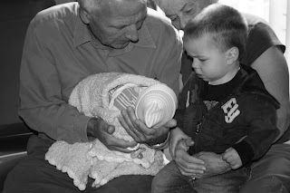 I think that poor little Liam was more worried about his mommy than he was concerned with his new little sister when he came to visit us in the hospital. Given that he has been hospitalized twice in the last year, I think he thought something was wrong with me when he saw me in the hospital gown and bed. He wanted to come straight up and sit with me. Once he realized I was okay, he was down to meet (and kiss) his little sister for the first time. He has been so wonderful with her and has far exceeded any of our expectations. He seems to feel completely comfortable that there is plenty of love in this family for the both of them. He loves his little sister all ready and wants to hold her hand every chance he gets. Yesterday Skyler was fussing and Liam decided that she needed a pacifier. He walked all the way up the stairs on his own, into her room, found her pacifier and brought it back down. He does not seem to be jealous at all and when he sees me holding her, he smiles and says “baby” or “sisser”. He is such a wonderful brother already! I love this family!