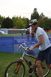 Uncle Scott, in the middle of a complete remodel on Grandma’s house, somehow found the time to do the Kirkland Triathlon this morning. He rocked it and, aside from the mishap on the bike (he was riding a 10 year old mountain bike – possibly a girls bike – that had a rear view mirror and a bell!), had a great time. The whole family went and cheered him on every step of the way. It was a high for all of us. Nice work big brother!