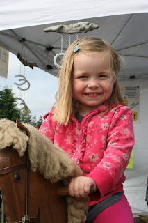 We decided to take a last minute trip out to Whidbey Island today. I had never been. The kids loved the ferry ride (and so did mom and dad – they served popcorn, beer and wine!). We went through the town of Langley and then headed north towards Deception Pass. However, we got held up at the Loganberry Festival and never made it to the Pass. We did see Mike on the way home finishing up his 24 hour race – so random and very cool!